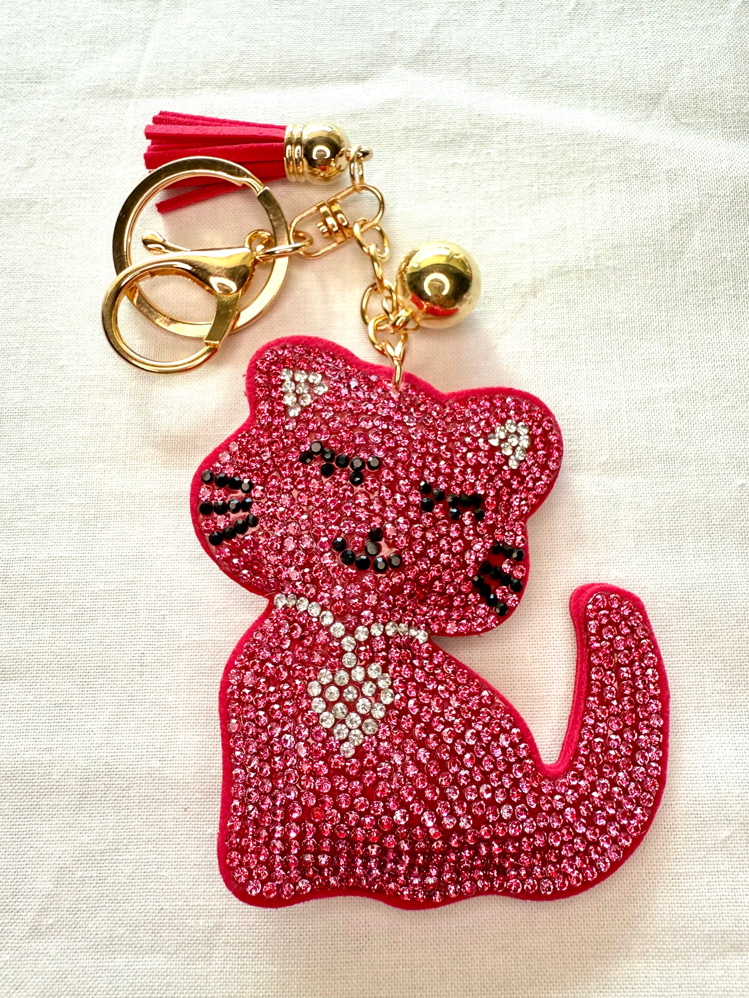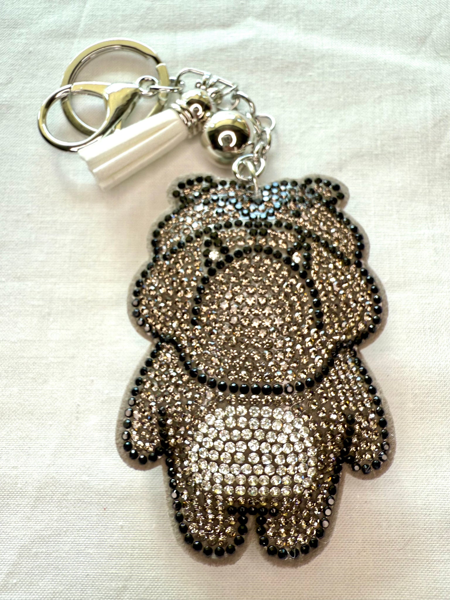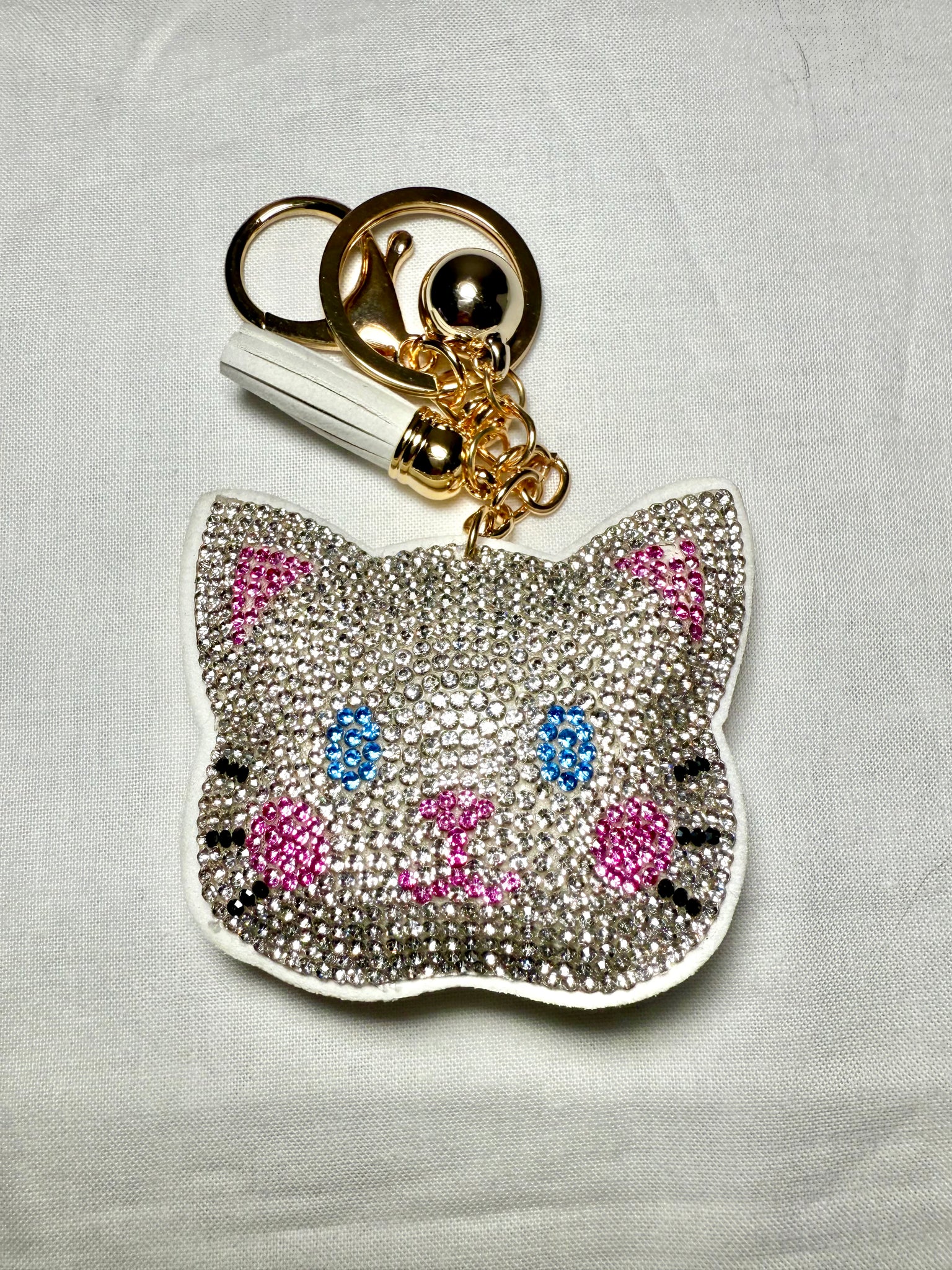These bling rhinestone puffy keychains stand out on your key ring or attached to your purse/handbag/backpack. Bling design is on one side of the keychain only. Edges are sewn and they are very lightweight. Keychain has a key ring with a tassel and a large lobster clasp.