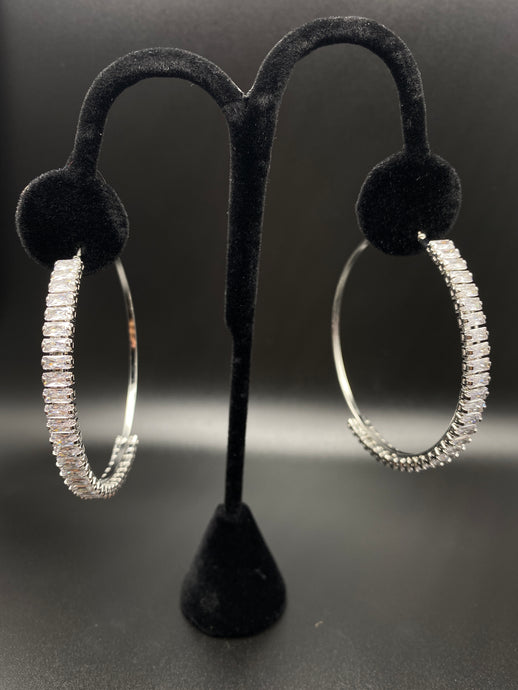 Rhinestone Baguette Cut Hoop Earrings - Silvertone