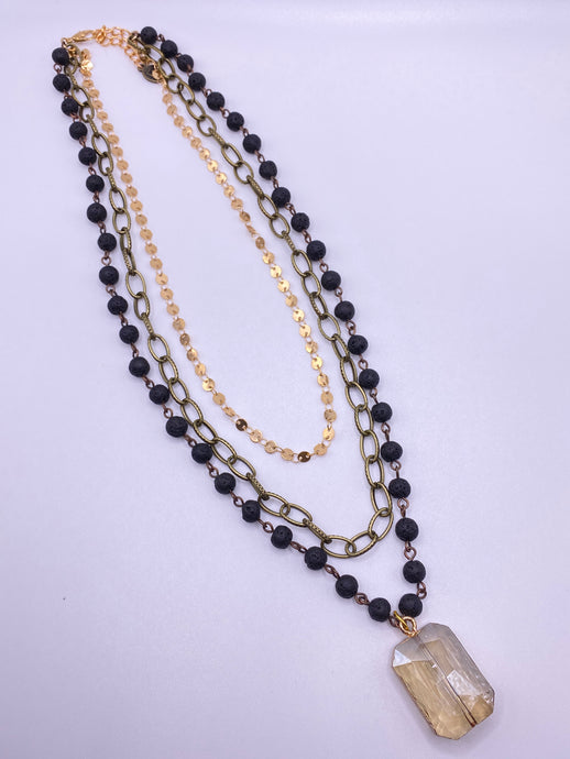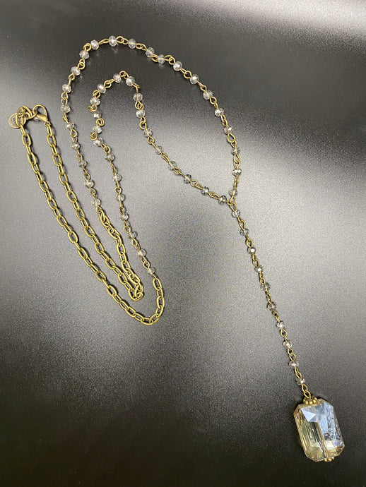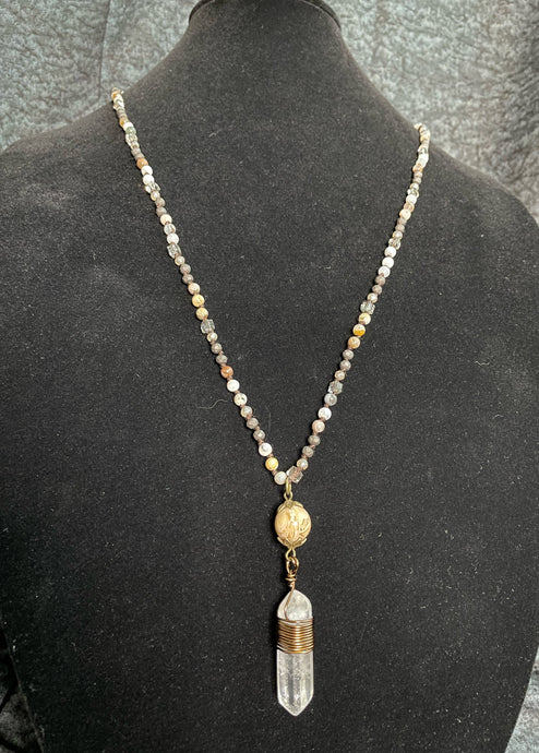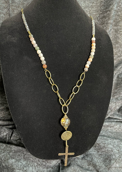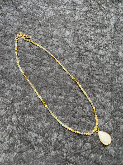 Multi Colored Crystal Bead Necklace with Marble Charm