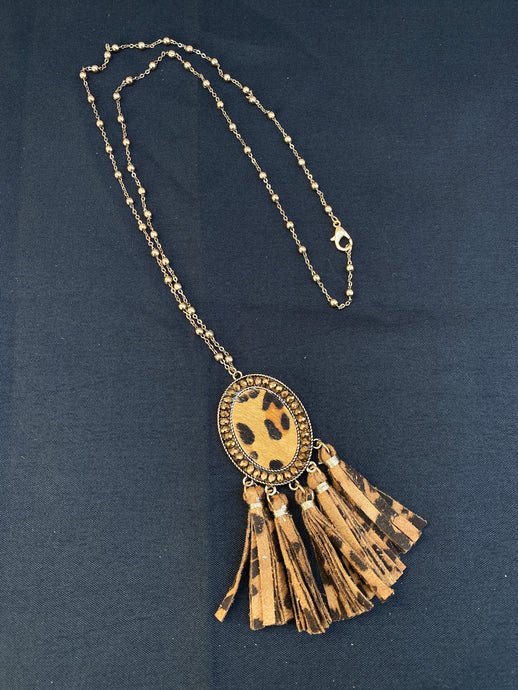 Leopard Hide Long Necklace with Leopard Suede Tassel