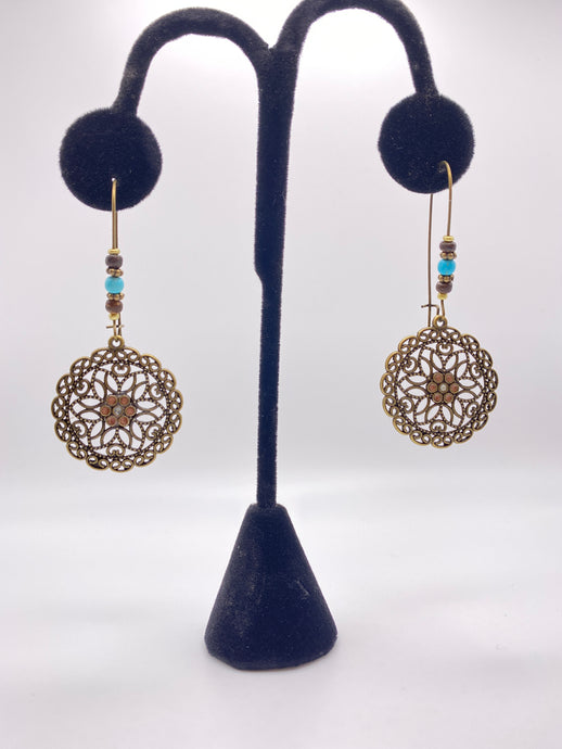 Boho Flower Spirograph Copper Earrings