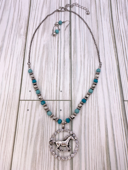 Rhinestone Pendant with Horse Necklace Set