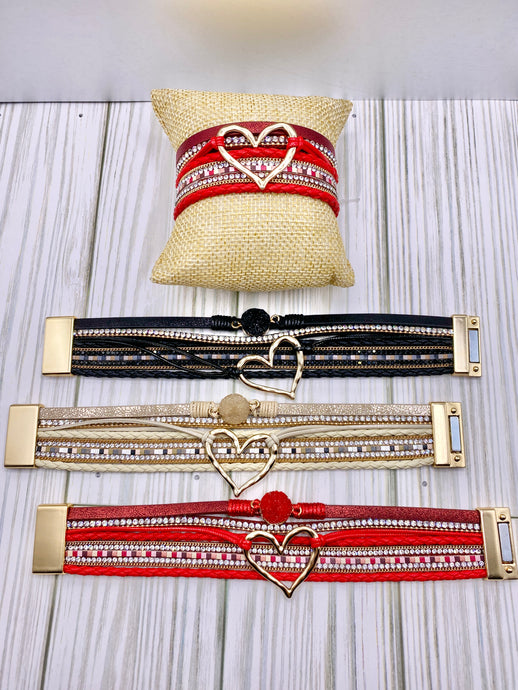 Multi Strand Bracelet with Heart and Rhinestones
