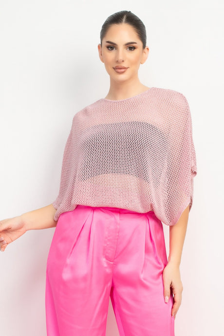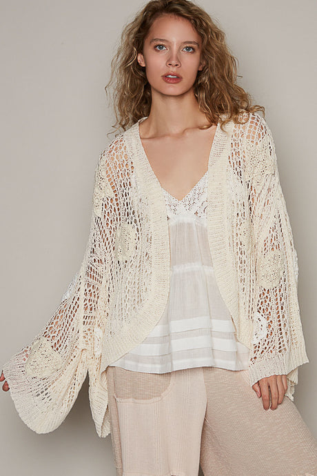 POL Oversized Fit Open Lace Top with White Lace Appliqués