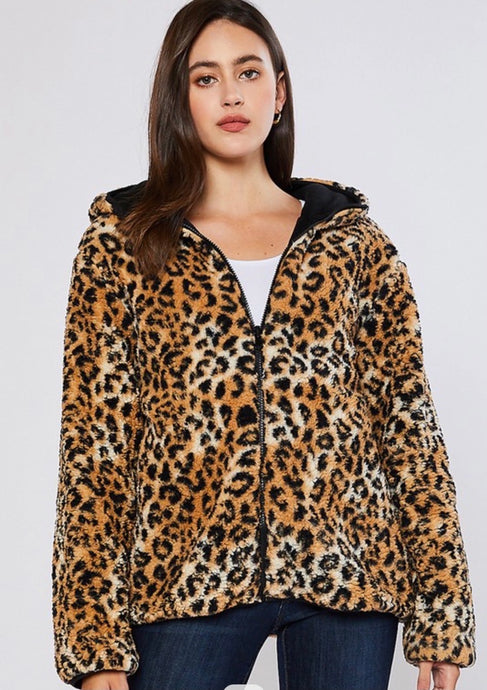 Leopard/Black Reversible Sherpa/Fleece Jacket - Women's